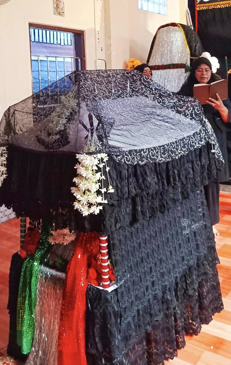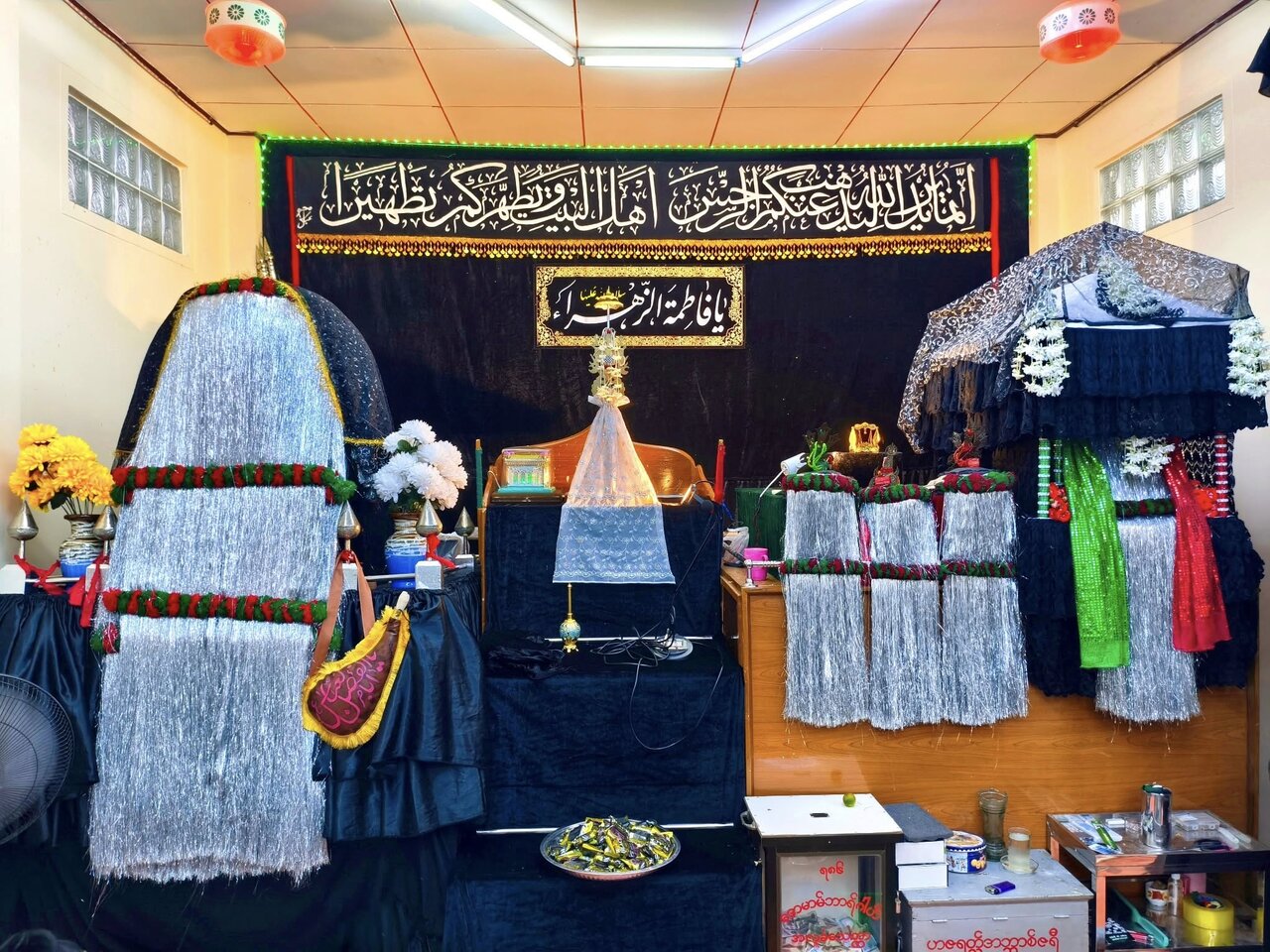 အဗ်နာ ။ ။ ပြည်ထောင်စု မြန်မာ နိုင်ငံ ပဲခူးတိုင်း ဒေသကြီး ပြည် မြို့ ရှိ ရှီအဟ် အေမာမ်ဘာရာ (သို့) အေမာမ် ဘရ်ဂါဟ်တွင် အမျိုးသမီးများ ၏ သခင်မကြီး ဟဇရသ် ဖွာတွေမဟ် ဇဲဟ်ရာ (စ.အ ) ၏ ရှဟာဒသ် အတွက် ပြု လုပ် သည့် မဂျ်လစ်ဇေ အဇါ ၏ မြင်ကွင်း ဖြစ်ပါတယ်။ Photos Credit - Shia Imambaragah _ Pyay, Myanmar
