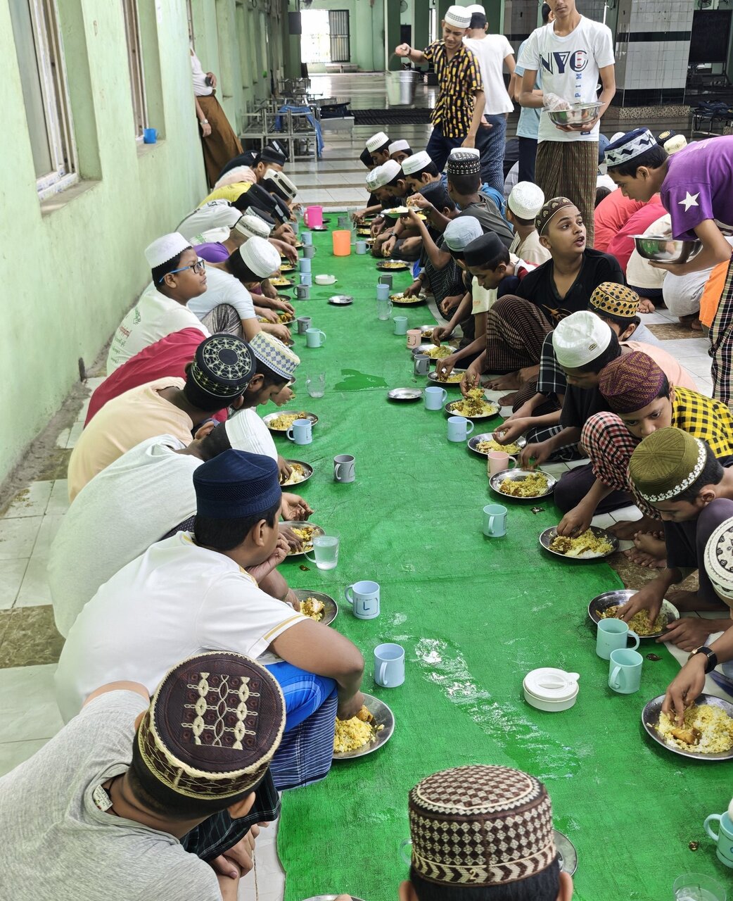 အဗ်နာ ။ ။ ဒေါပုံမြို့နယ် နွယ်အေးစွန္နီဂျာမဗလီကြီး၏ မဒရ်စဟ်အဗ်ဒွလ်မသီးန် ကျမ်းမြတ်ကုန်အာန် အာဂုံ ဆောင် ကျောင်း နှင့် မော်လဝီအခြခံကျောင်းတွင်ကျောင်းသားများနှင့် ဆရာများ အတွက် လိလ္လာ အလှူငွေဖြင့် လူဦးရေ (၁၆၀) တနပ်စာ ဟာဂျီ ကဘီးရ်အဟ်မဒ် ၁၀၁ လမ်း မဂ်လာတောင်ညွန့် မှ ထမင်းကျွေး လှူဒါန်း ကြောင်း သိရပါတယ်။ Photos Credit - ဒေါပုံမြို့နယ် နွယ်အေးစွန္နီဂျာမေဗလီလူမှုကူညီရေးအသင်း