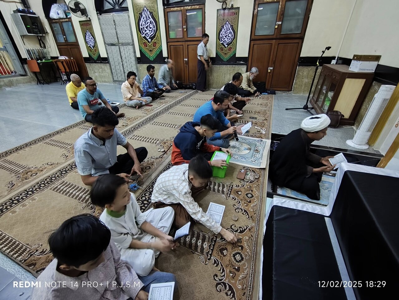 အဗ်နာ ။ ။ ပြည်ထောင်စု မြန်မာ နိုင်ငံ ၏ မြို့တော် ဟောင်း ရန်ကုန်မြို့ ပန်ဂျာ ရှီအဟ် မတ်စ်ဂျစ်ဒ် တွင် ဒီဇင်ဘာလ ၂ ရက်နေ့ ၂၀၂၅ ခုနှစ် အင်္ဂါနေ့ ညတွင် ပြုလုပ် သည့် ဒိုအာ ယေ သဝစိုလ် စုပေါင်းဖတ်ရွတ် နေသည့် ပုံရိပ်များ ဖြစ်ပါ တယ်။ ။ Photos Credit - Punjah Masjid