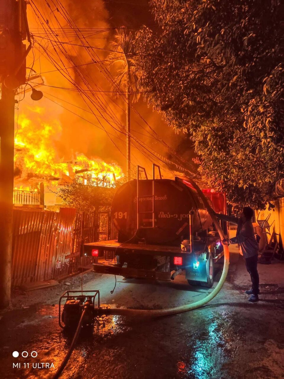 အဗ်နာ ။ ။ ဒီဇင်ဘာ ၃၁ ရက် နှစ်သစ်ကူးမယ့် ညပိုင်း ၇ နာရီ နီးပါးအချိန် က မြန်မာ နိုင်ငံ မြို့တော် သစ် နေပြည်တော် ၊ ပျဉ်းမနားမြို့နယ်၊ ရန်အောင် ၂ ရပ်ကွက်မှာ မီးလောင်ခဲ့ကြောင်းသိရှိရပါတယ်။ တစ်နာရီ ကျော်ကြာ လောင်ခဲ့သည့် ဤ မီးကြောင့် အိမ်အလုံးရေ ၅၄ လုံး မီးထဲ ပါခဲ့တယ်လို့ သိရပါတယ်။ Photos Credit - MFS၊ Zin Lin Htet၊ Ko Hein Ko