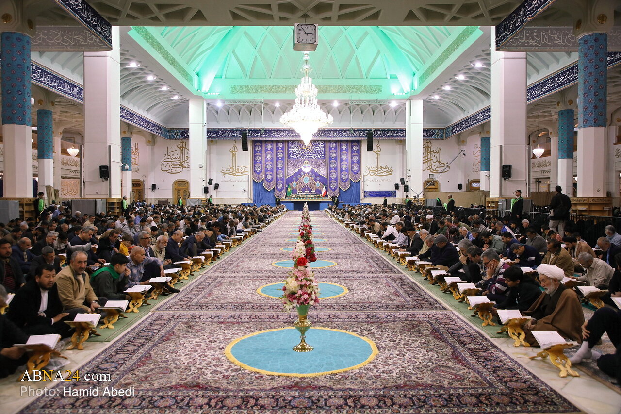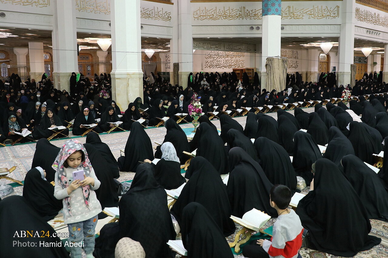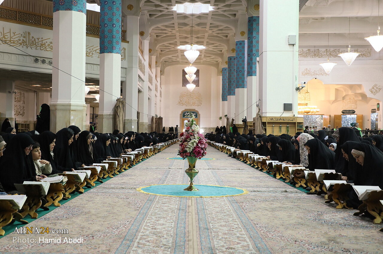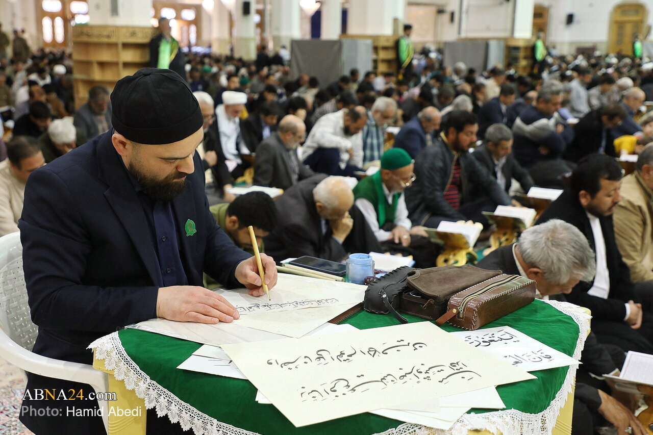 အဗ်နာ ။ ။ အီရန် အစ္စလာမ်မစ် ပြည်သူ့ သမ္မတ နိုင်ငံ ကွမ်းမြို့ရှိ သခင်မကြီး ဖွာတွေမဟ် မအ်စူမဟ် (စ.အ) ရောင်ဇာတော် တွင် ဖေဖော်ဝါရီ ၂၀ ရက်နေ့ ၂၀၂၆ ခုနှစ် တွင် ပြုလုပ်သည့် ကျမ်းတော်မြတ် ကုရ်အာန် စုပေါင်း သေလာဝသ် ၏ ပုံရိပ်များဖြစ်ပါတယ်။